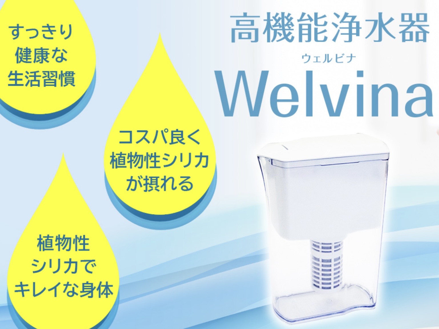 毎日使う水の質を見直したい方に選ばれているのが、高機能浄水器Welvinaです。